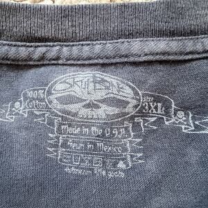 The product is a lot of 2 men's 3XL Skull Bone T-shirts featuring a tie-dye design. Made of cotton and manufactured in the United States, these regular fit shirts are perfect for all seasons.
