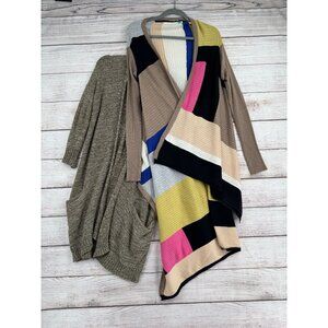 Lot of 2 Sparrow Cardigan Sweater Women's Small Multicolor Colorblock Waterfall