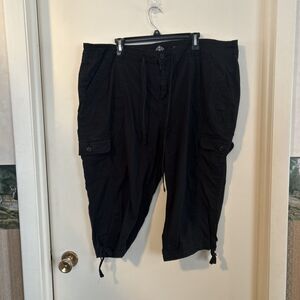 Lot of 2 St Johns Bay Women 24W Blue & Black Capri MidRise Adj Drawstrings