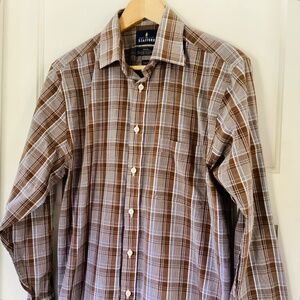 Lot of 2 Stafford’s EASY CARE BROADCLOTH FITTED PLAID Dress Shirts 15.5 32-33
