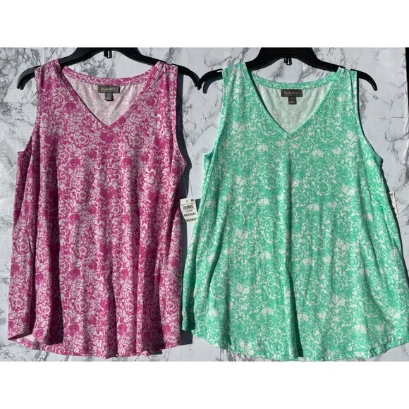 Lot of 2 Style &Co. Womens Medium V-Neck Sleeveless Floral Print Tank Tops