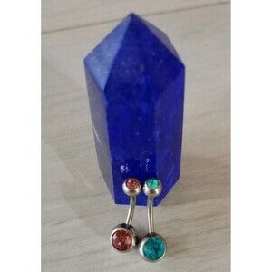Lot of 2 Surgical Steel Silver Blue & Amber Crystal Belly Ring 16 Gauge Boho