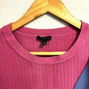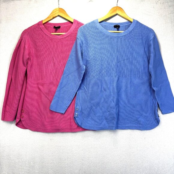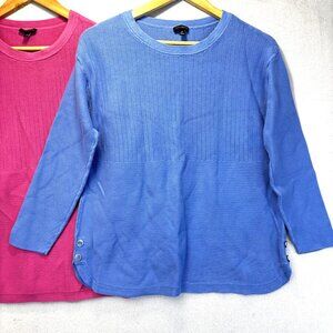 Lot of 2 Talbots Knit Sweater Womens Medium Blue Pink Button Hem Top Long Sleeve