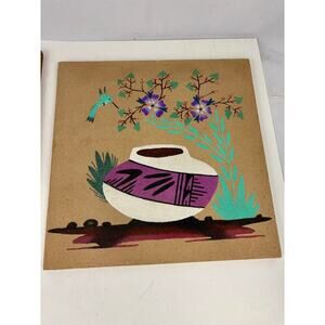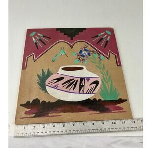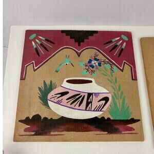 Lot of 2 VTG Native American Navajo Sand Painting Wooden Signed Masquat 12"x12"