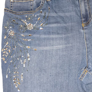 Fall in love with the versatility of these pants as they can be dressed up or down depending on the occasion. Whether you're running errands or attending a party, these capris will make you stand out in style. So why settle for basic when you can have a unique and chic piece like these Vintage Y2K Rhinestone Jeans Capri?