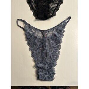 This listing includes a pair of Victoria's Secret bikini panties and a Brazilian slip, both in a solid blue and black color. Made of a blend of polyamide and elastane, these XL panties feature a stretch fabric for comfort and a mid-rise waist compression area. The classic style and Victoria's Secret brand make these panties a timeless addition to any woman's lingerie collection, machine washable for easy care. Perfect for adding a touch of elegance and style to any outfit.