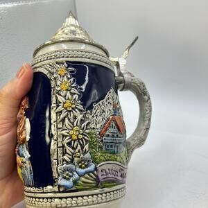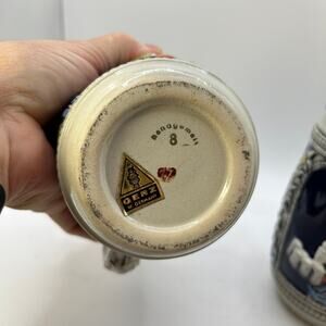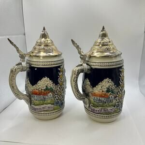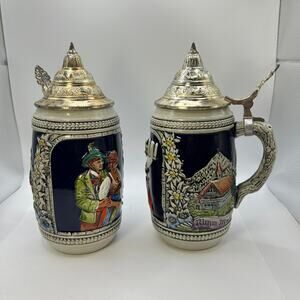 Lot of 2 Vintage DBGM German Ceramic Beer Steins - Pewter Lid - West Germany