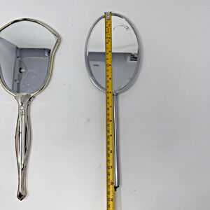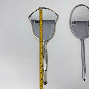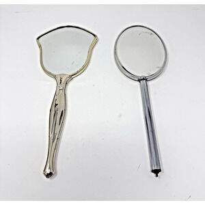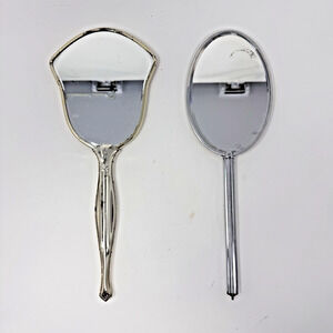 Lot of 2 Vintage Hand Mirrors – Ornate Vanity Mirror & Chrome Handle Oval Mirror