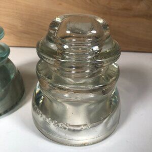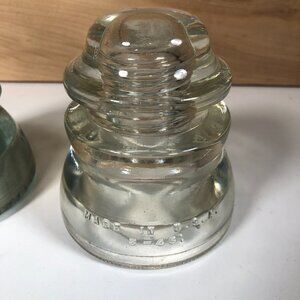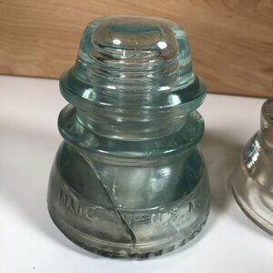 This lot features two vintage Hemingray glass insulators, made in the United States. These insulators are perfect for collectors or anyone interested in American history, the technological development of telegraph/telephone communication, or vintage glassware. These insulators are a great addition to any collection and are sure to be a unique conversation piece.