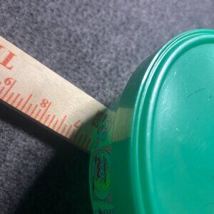 This product is a lot of 2 vintage Packerware Easter containers, perfect for storing eggs and other small items during the spring season. Made in the USA in the 1990s, these round storage containers feature a green color with a vintage pattern, showcasing a theme of spring and Easter. The set includes two containers, ideal for collectors or anyone looking for unique and nostalgic kitchen decor.