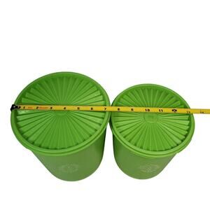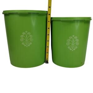 Lot of 2 Vtg Nesting Tupperware Servalier Green Canister Large 805-4 Med 807-5