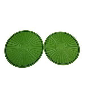 Lot of 2 Vintage Nesting Tupperware Servalier Green Canister Large 805-4 Medium 807-5.