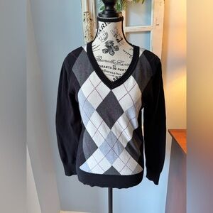 St John’s Bay v-neck argyle sweater. Good condition. May show minor signs of wear from washing.