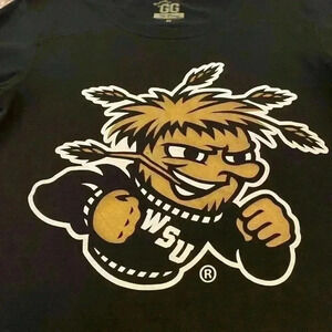 Show off your love for the Wichita State Shockers with this lot of women's shirts in size Small. The shirts come in a sleek black and gold color combination, perfect for any basketball game or fan event. Made for women, these shirts are a great way to show support for your favorite team while staying stylish and comfortable. The shirts are officially licensed fan apparel, perfect for any college-NCAA enthusiast. Whether you're cheering on the Shockers from the stands or watching from home, these shirts are a must-have for any true fan. Don't miss out on the opportunity to add these Wichita State Shockers shirts to your collection today! Look at all the pictures selling 2 different shirts