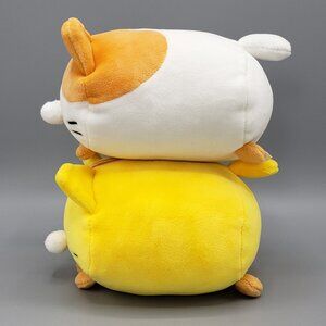 Lot of 2 squishy plush toys from Nyanko Yell World. Included is a yellow cat and a calico cat. Each of these stuffed animals measures approximately 5-1/2" long.