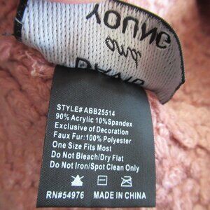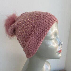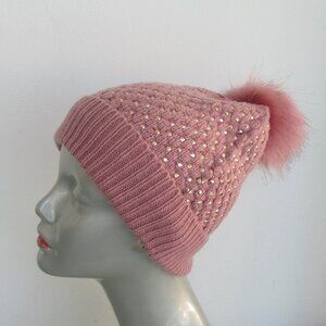 The David & Young hat is pink color, embellished, and it has a pom pom, in pink color as well. Condition is new, never worn.