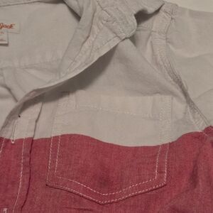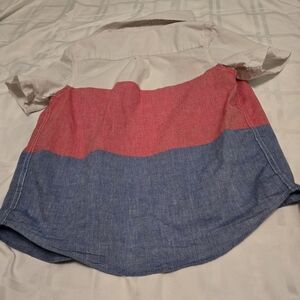 2) Cat & Jack short sleeved button up with collar - red, tan, and blue color block
