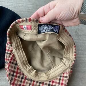 Lot of 2 paperboy hats docker black and red and tan plaid Burton hat vintage