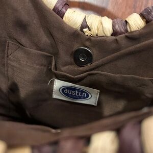 2. Brown and Tan woven straw with wood handle - Austin Clothing Co.