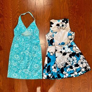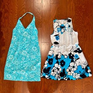 Lot of 2 sundresses halter Hawaiian print floral a-line skater tank dress beach