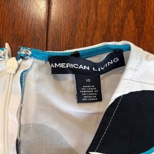 2. American Living - White blue and black floral print tank sleeveless a-line fit and flare dress with back zipper - Size 10