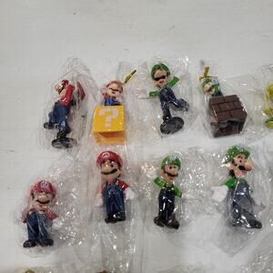 This product is a lot of 23 Super Mario Nintendo cake topper figures. Each figure features the character Mario from the Super Mario Bros. franchise. Made of plastic and with a scale of 1:9, these action figures were manufactured in 2007. Perfect for collectors or for adding to your Super Mario-themed cake for a special occasion. These Nintendo cake topper figures are sure to bring a touch of fun and nostalgia to any celebration.