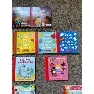 See pics for close ups of what's included- examples are "Once I Was a Pollywog", "Kiss, Kiss Pout-Pout Fish", ABC books and more!