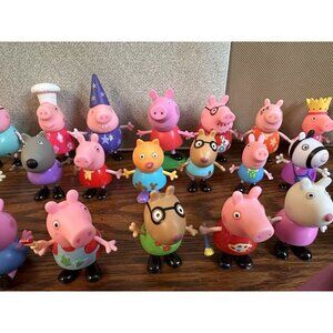 This lot includes 28 Jazwares Peppa Pig toy figures, featuring various characters from the beloved cartoon and TV show franchise. Each figure is made with high-quality materials and is perfect for collectors or fans of the series. The brand, Jazwares, is known for their attention to detail and creating accurate representations of the characters.