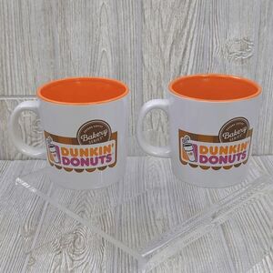 Lot of 2 Dunkin Donuts White Orange Interior Bakery Series Mugs Coffee Tea