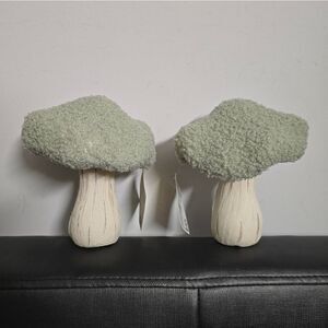 Lot of 2 Easter Spring Summer Fall Green Sherpa Mushrooms Tabletop Decor, 6"