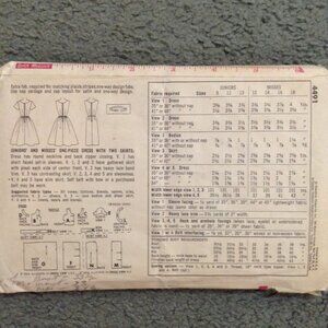 The fabric & notion requirements for each item are available in the picture immediately following each picture of the front of the pattern. Please note that the measurements in each instance were meant to be what the person should measure, & were not the exact measurements of the pattern itself. Allow for at least 1" (& perhaps as much as 2") garment ease. Each envelope includes instructions.