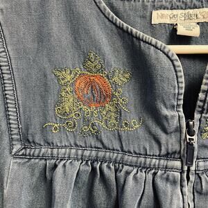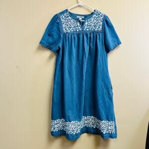 Lot of 3 Go Softly size small 100% cotton denim dressing gown nightgown. All 3 are in excellent condition. One has embroidered pumpkins, 1 has white embroidery flowers, and 1 has sea life embroidery.