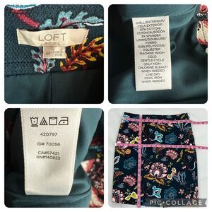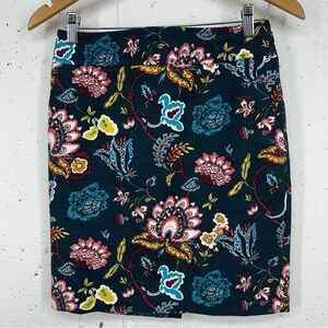 Loft Size 4P Dark Teal Floral Lined Pencil Skirt