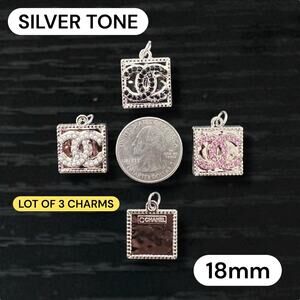 Lot of 3 CC Square Designer Zipper Pull Button Charms 18mm