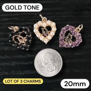 Lot of 3 CD Heart Gold Tone Zipper Pull Button Charms 20mm