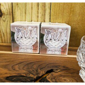 Lot of 3 Carolyn 3 24% Lead Crystal Votive Candle Holders. Produced by Crystal Clear Industries in the USA. Original box. Excellent unused condition. Measures approximately 3.5 x 3 inches. Please see pictures for measurements and details.