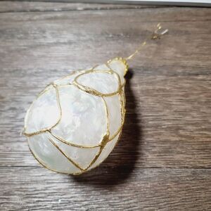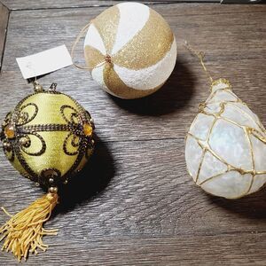 Lot of 3 Christmas Tree Gold Ornaments Iridescent Glitter Ball Rhinestone