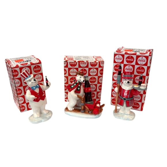 Lot of 3 Coca-Cola Polar Bears Around the World Germany Canada United Kingdom
