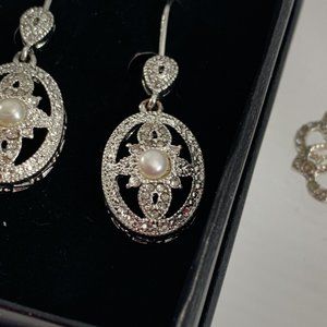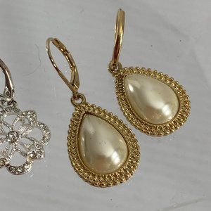 Lot of 3 Dangle Earrings Gold Tone Silver Tone Rhinestones Bling Faux Pearl