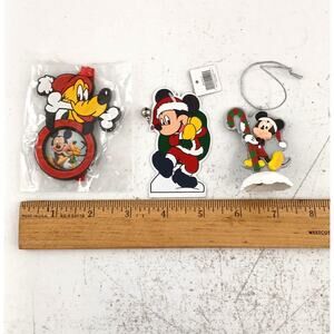 Lot of 3 Disney's Mickey & Pluto w/ Picture Frame Christmas Tree Ornament
