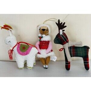 Lot of 3 Fabric Christmas Ornaments White Alpaca Plaid Reindeer Target Reindeer
