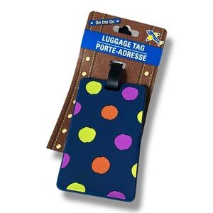 3 soft rubber luggage tags with removable address inserts. Set includes a pineapple, strawberry, and polka dot rectangle, all new with tags.