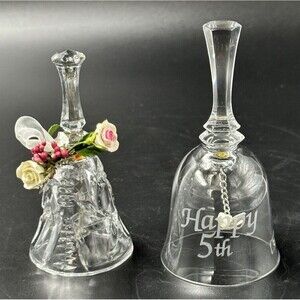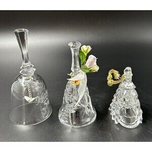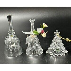 Lot of 3 Glass and Crystal Bells Mikasa Christmas Tree Bell Happy 5th Bell