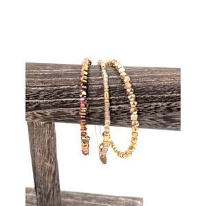 Lot of 3 Gold Tone Champagne Color Crystal Coordinating Wire Bangle Bracelets