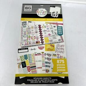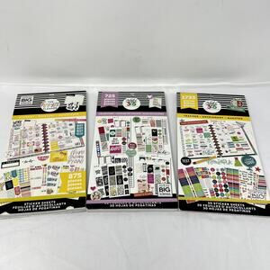 This lot of 3 Happy Planner sticker value packs includes the "Yay Student" collection, featuring vibrant vinyl stickers. Each pack offers a variety of colorful designs and themes, perfect for enhancing organization and adding personality to planners, notebooks, or journals. Ideal for students or anyone looking to stay organized with style, these sticker packs ensure creativity and functionality in one convenient bundle