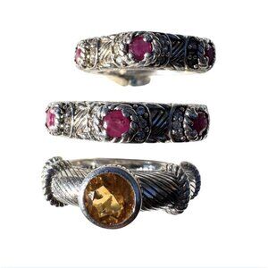 Lot of 3 Judith Ripka Designer Rings - Sterling Silver Ruby & Citrine - 16 grams
