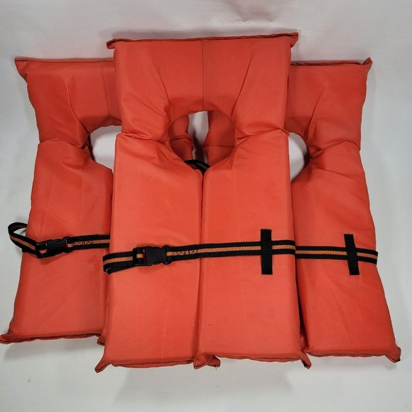 Offered here is a Lot of 3 Orange Kent Near-Shore Buoyant Adult SIZE SUPER LARGE Marine Life-Vests Type II PFD Flotation Devices Model SKF
