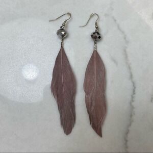 First are pale plum feathers with silver faceted beads, measures 4.5 inches long.