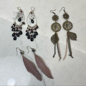 Lot of 3 Long Dangle Earrings