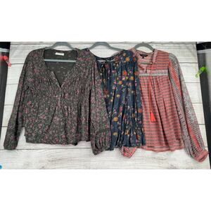 Lot of 3 Lucky Brand Floral BOHO Blouses Womens Small Multicolor Tassled